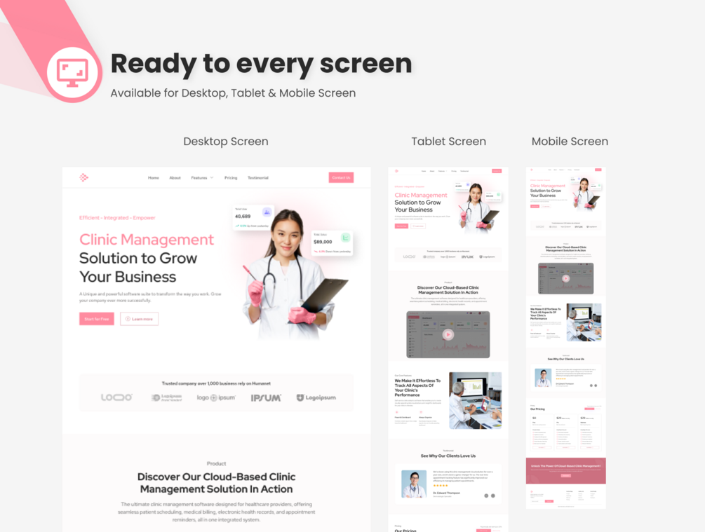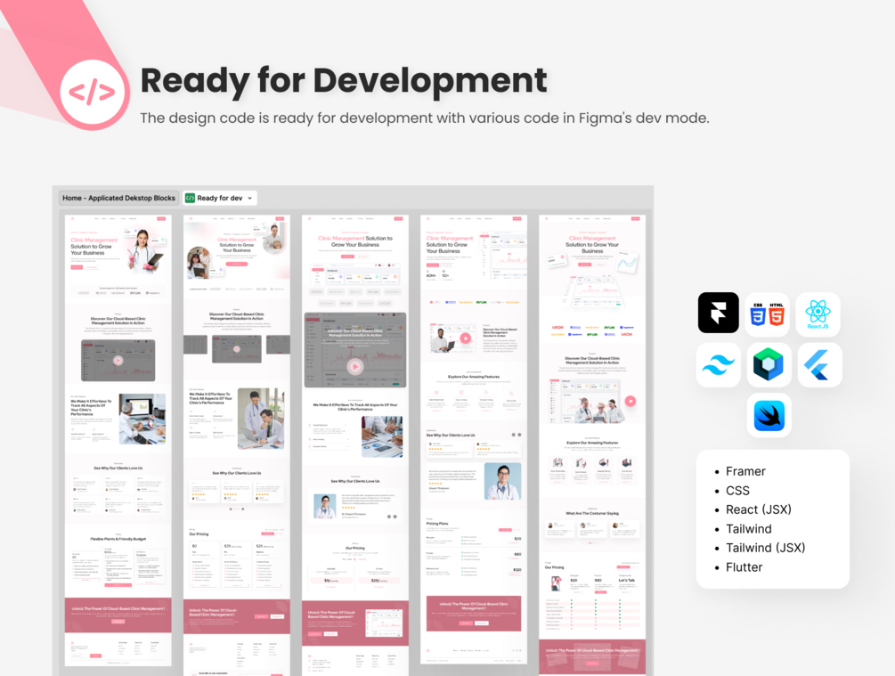Landing Page Template & UI Kit for SaaS Clinic Management