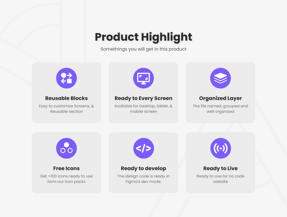 You'll get a customizable 'Landing Page Template & UI Kit' compatible with Figma and Framer and ready for development.